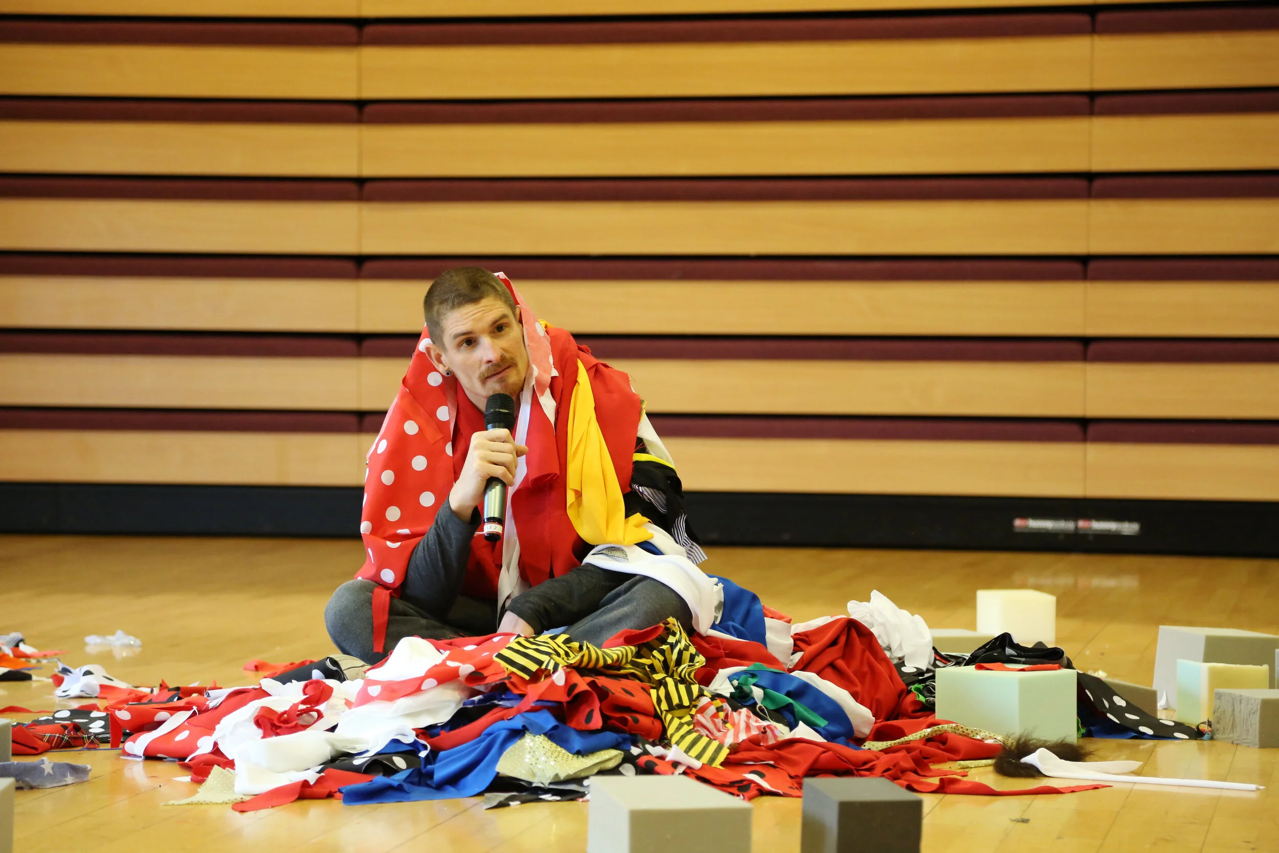 Dan Daw: Vicky touches on it in the work, that kind of “who are we doing it for?” and just applying that to performance as well and in my own practice: who do I do it for? Do I do it for me? I think so. But I know I also do it for the audience, otherwise why do it? So lots of questions around performance and practices… aware that, through my life, when I walk down the street that's performative because of the way I’m looked at. It’s performance. And I’ve always been performing. I’ve always been on, but haven’t keyed in and then getting angry and pissed off that I’m always being stared at and judged and compared. And now I’m getting to the point where you just let go and go ‘well, let them look. Just let them be in the uncomfortability or their comfortability or whatever they’re experiencing.’ I guess trying to find ways to kindly not make their experience of my body wrong. And to just go ‘OK, that’s happening. Cool, I still know who I am. That’s fine. They’re just unaware or whatever or they’re curious.’ (36:42)
